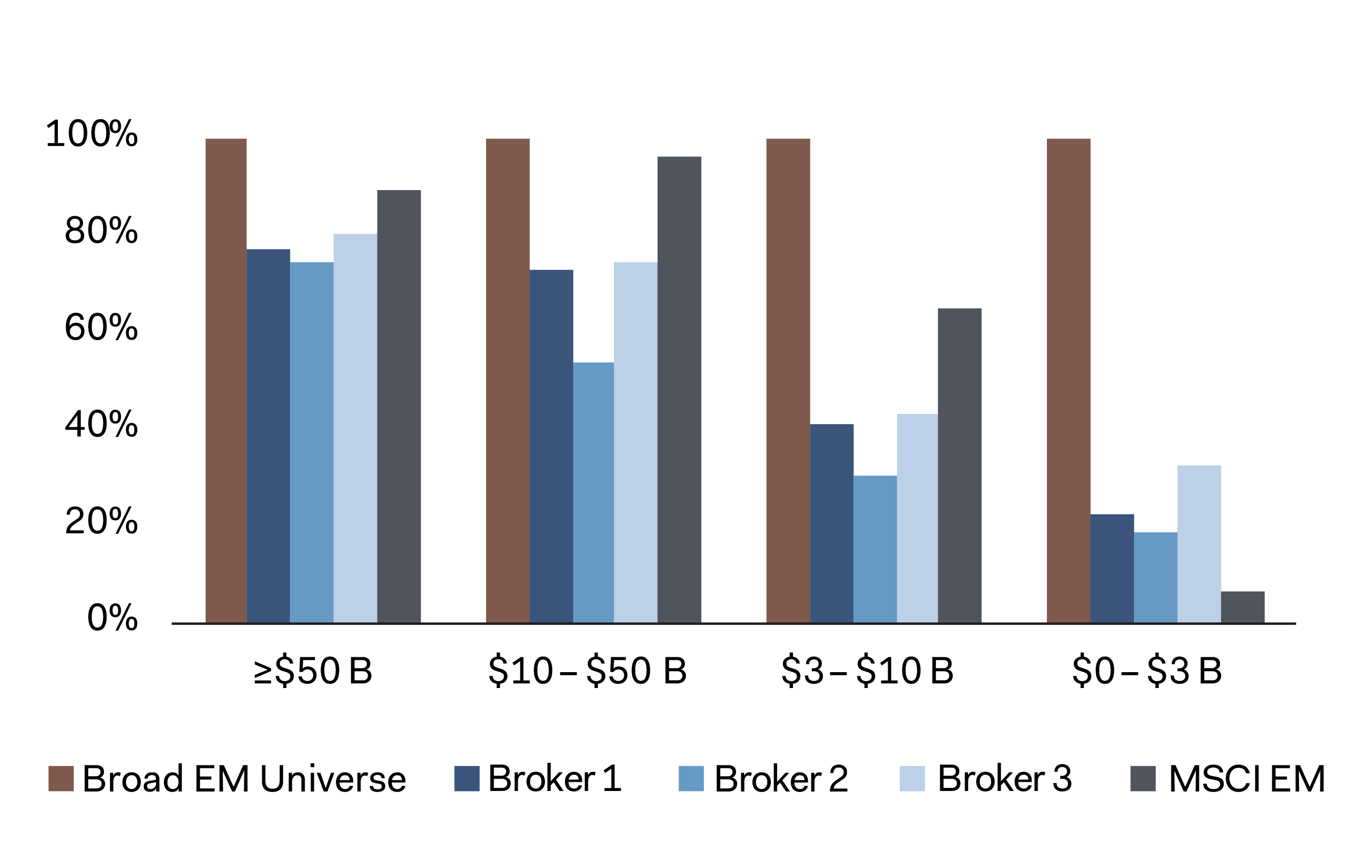 Sell-Side Coverage as a % of Broad EM Investable Universe by Market Cap