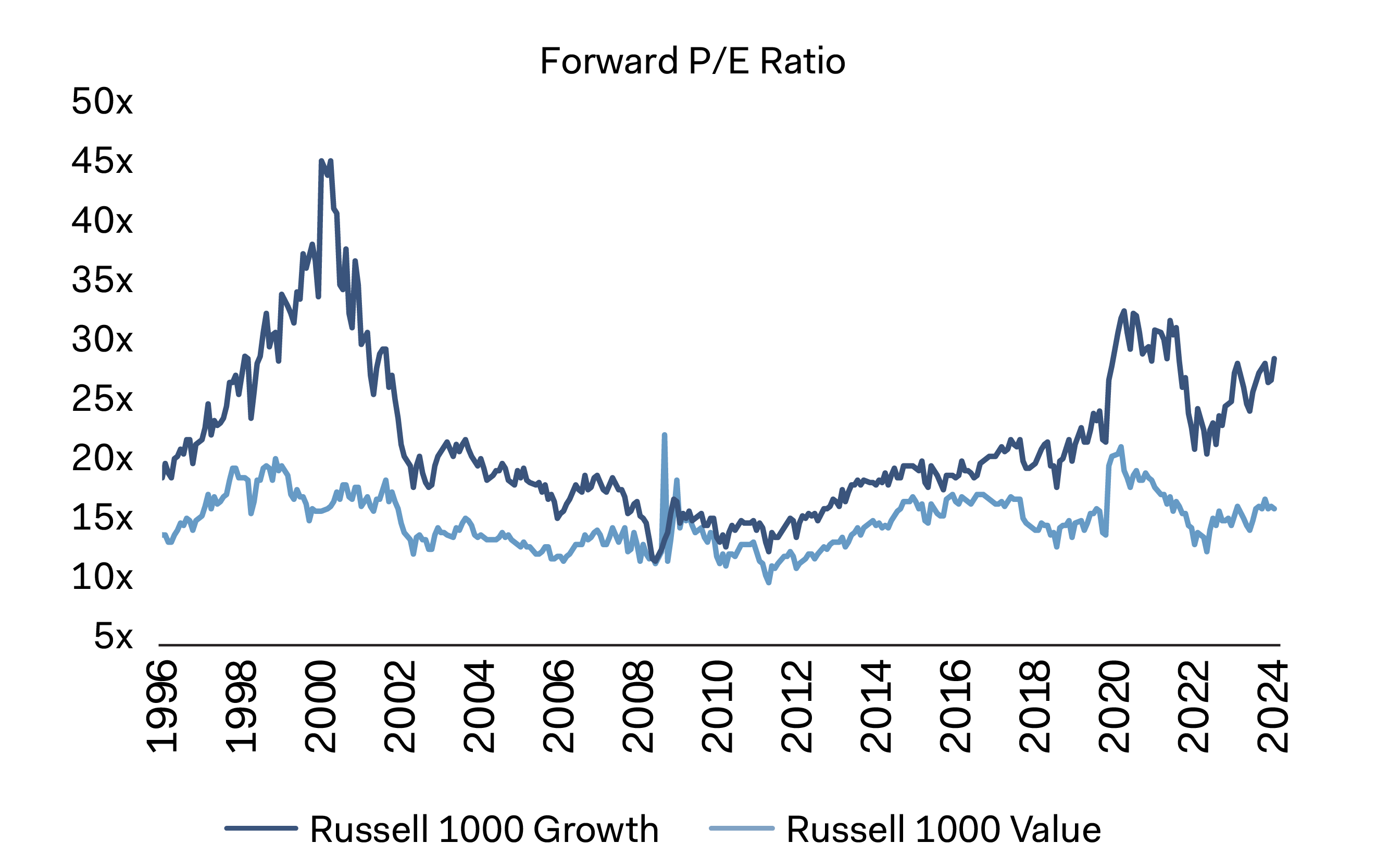 Figure 2. Rising Valuations with Wider Growth/Value Spread